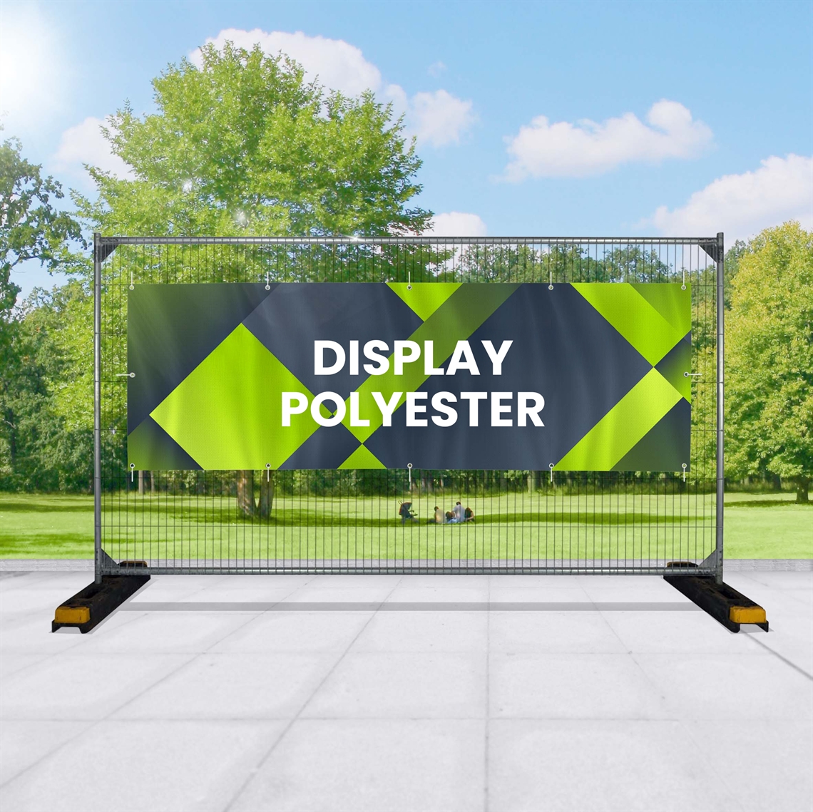 110gsm Air Mesh Polyester is our best equivalent of a PVC Mesh. It has large holes which makes the fabric lighter than a 220gsm Display Polyester, but it is still strong enough to use for outdoor banners. The most popular use of air mesh polyester is with heras fencing.