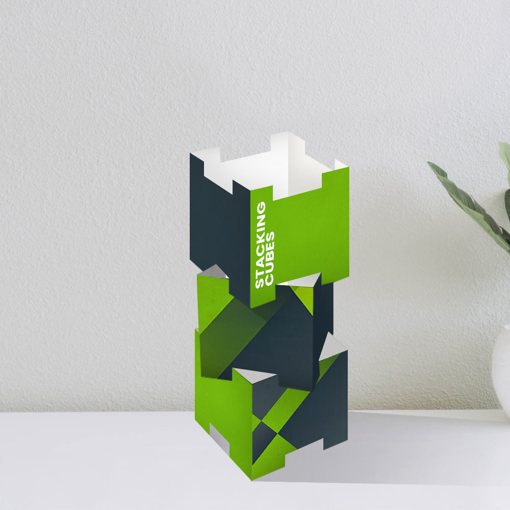 | How is it printed? | Stacking cubes are printed directly onto a cardboard sheet using one of our HP Latex R2000s. Once the board has been printed, we one of our Zund CNC digital cutters to cut them to size or shape. This advantage of using a CNC digital cutter over a die is that there are no expensive setup costs, and prototyping to test for sizing isn't an issue. The cut boards are then passed over to our finishing department who will pack ready for despatch. |