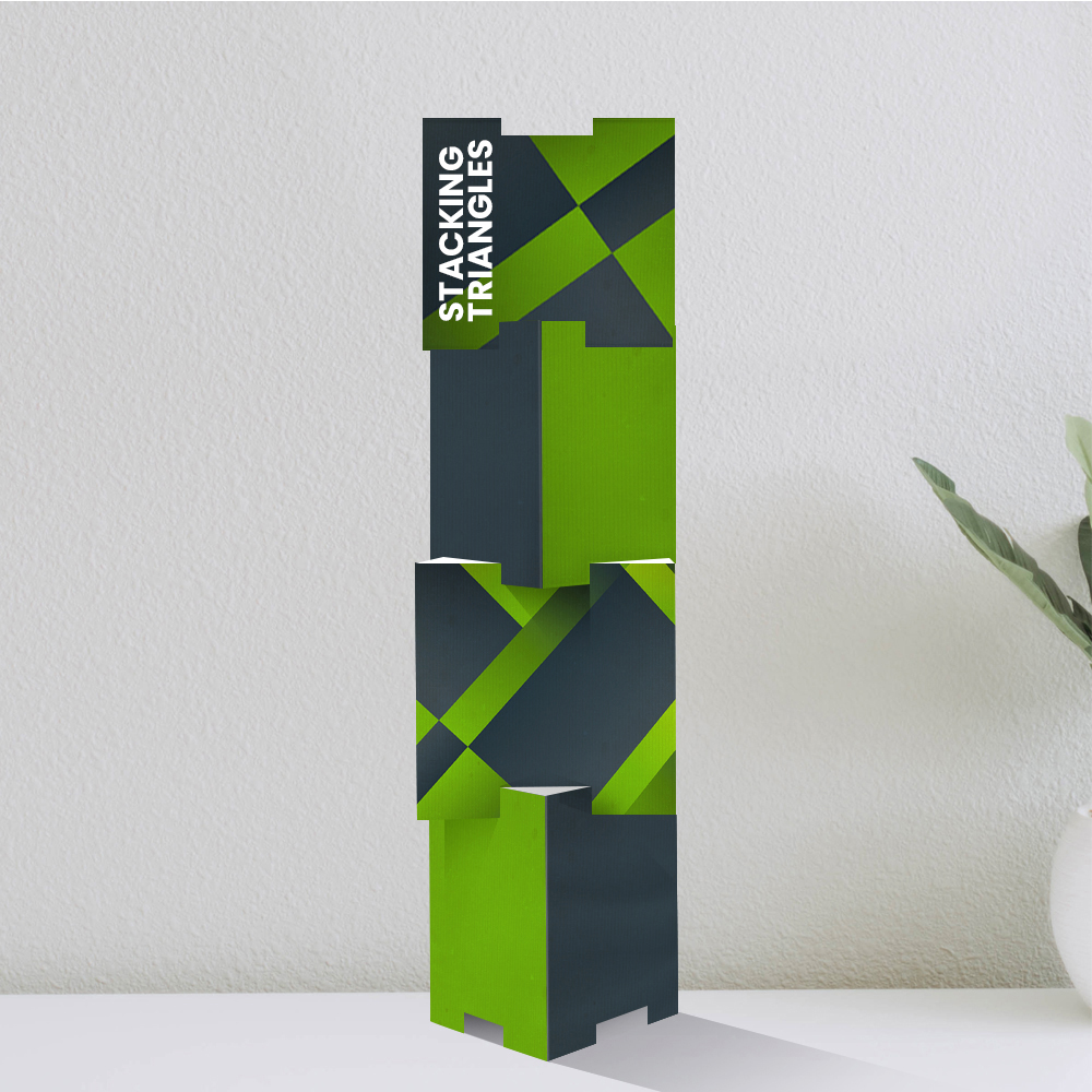 Stacking Triangles are a popular POS product because they can be stacked in multiple ways to keep the branding fresh. Price per set, excluding minimum charge and carriage.